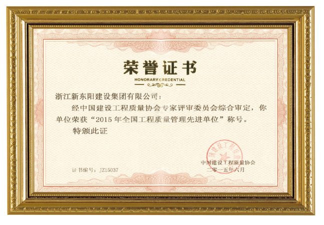 2015年全國(guó)工程質(zhì)量管理先進(jìn)單位